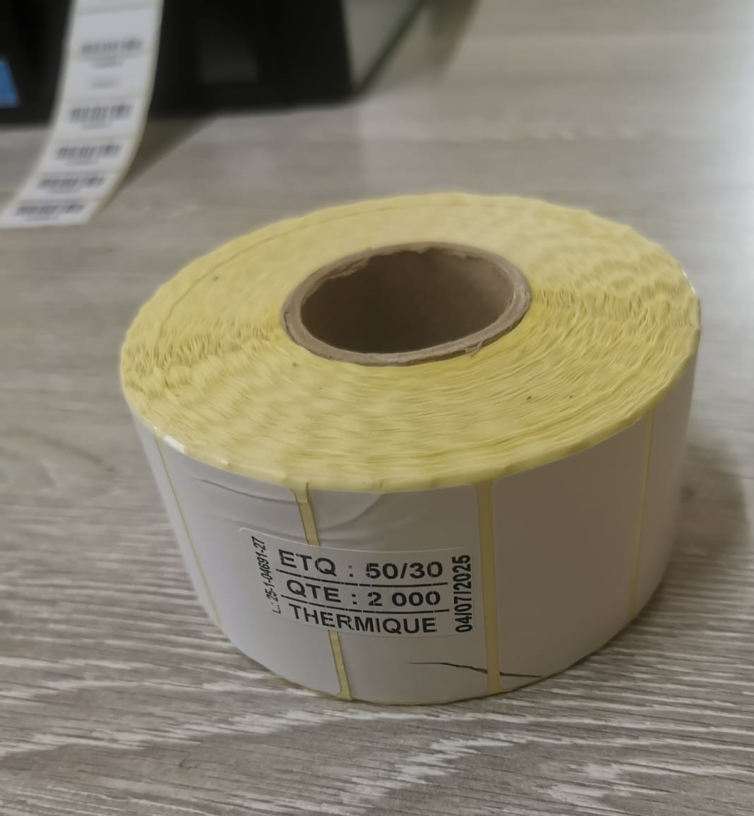2. Étiquettes thermiques : On n’a pas besoin de ruban à transfert thermique pour les imprimer.